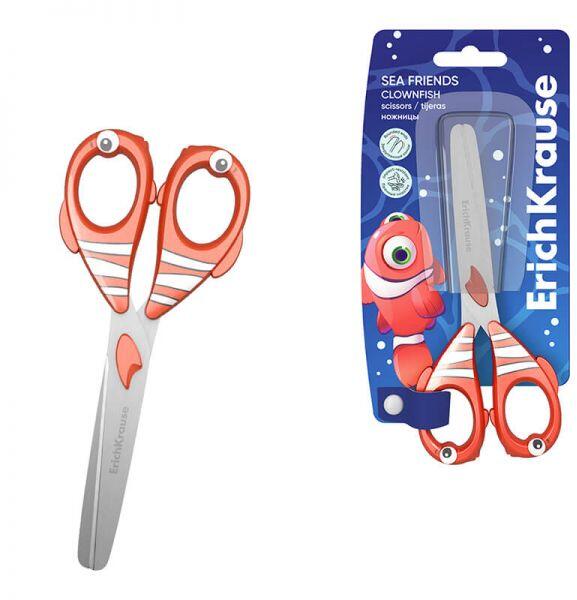 Mókás bohóchalas formájú olló. Kiváló minőségű rozsdamentes acél penge biztonságos, lekerekített végekkel.